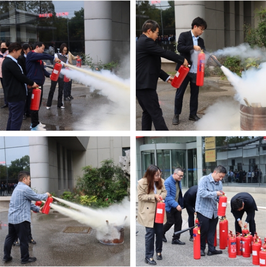 員工們手持滅火器參加現(xiàn)場(chǎng)滅火體驗(yàn)