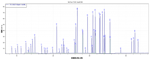 圖4. 54種揮發(fā)性有機(jī)物的選擇離子監(jiān)測(cè)模式圖(SIM)